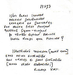 Vuonna 1993 - 15 vuotta sitten - vanhempi tyttäreni Kirsi, nykyinen graafinen suunnittelija, muisti