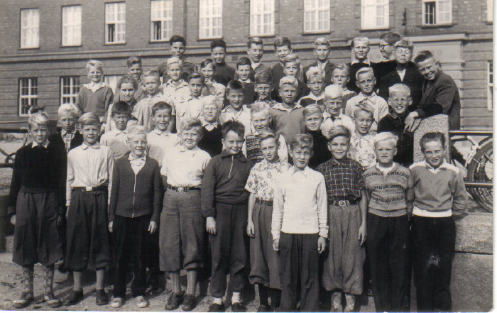 Oma luokkani IIC vuonna 1955, olimme siis 12-vuotiaita. Katso pukeutumista, useimmilla jalassaan golfhousut, siis puntit