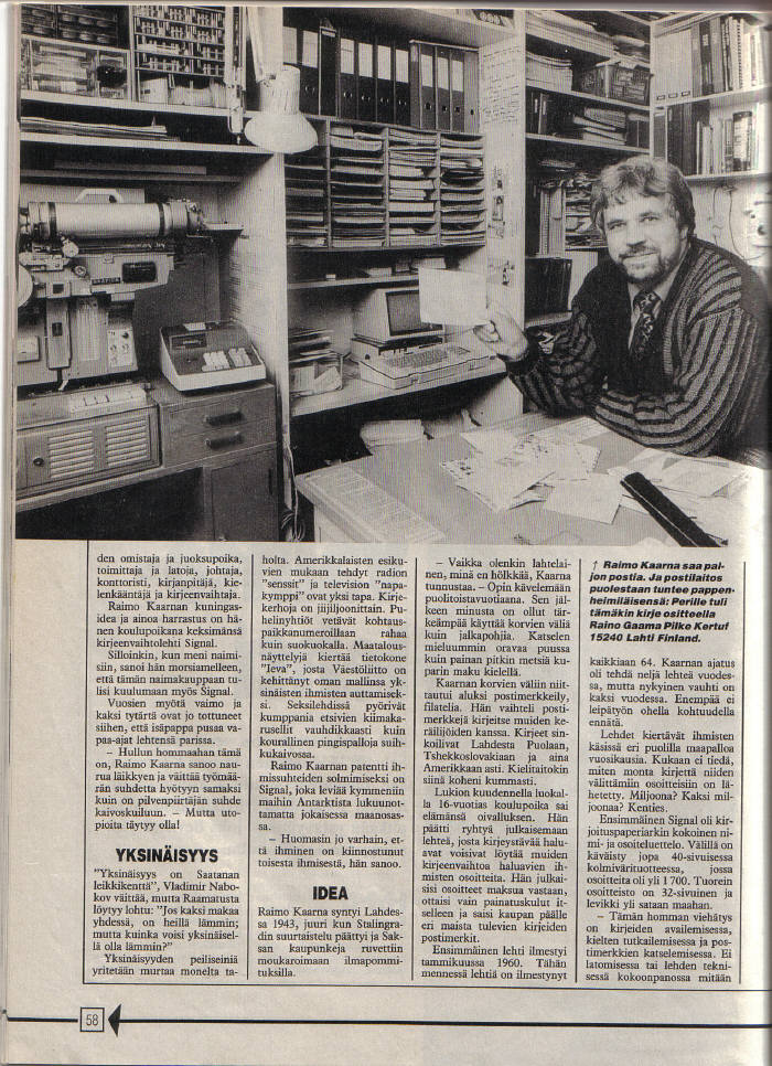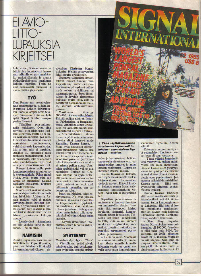 Tämä aikoinaan Suomen suurin tilattava aikakauslehti julkaisi kokonaisen kolmen sivun jutun Signalista.