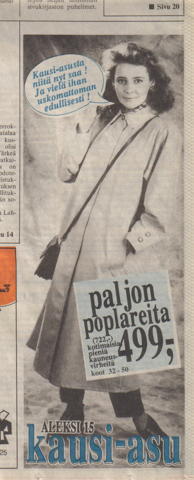 Kausi-asun 4x125 pmm puseroilmoitus, ja 1990-luvun lehdessä
