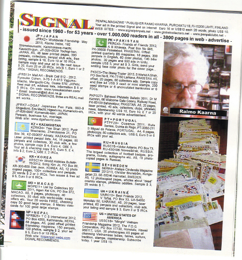 08.05.2013 Uusi englanninkielinen 20-sivuinen Signal-kirjeystävälehti ilmestynyt