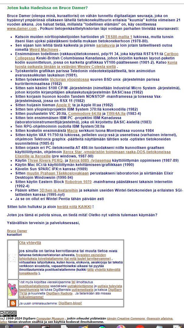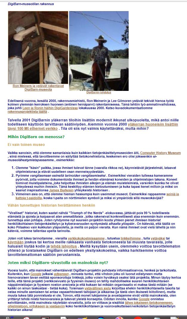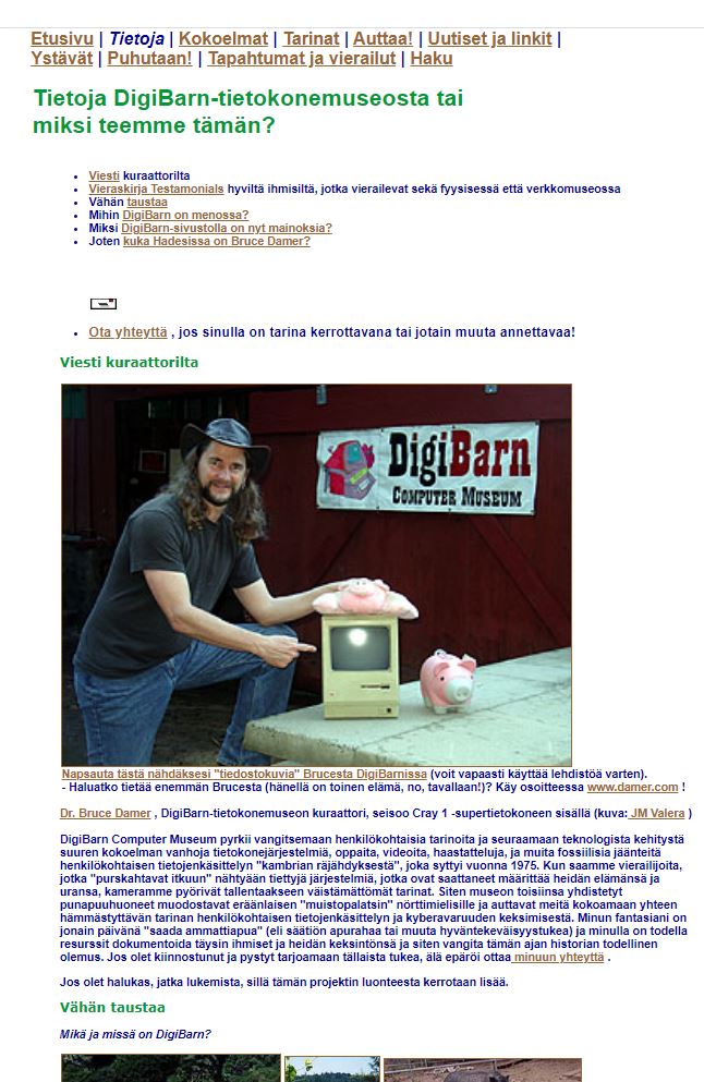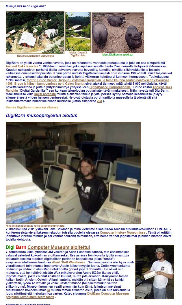 DigiBarn Computer Museum-esittelytekstin suomeksi - sivu 1 - sivu 2 - sivu 3 - sivu 4 KATSO KUVIA DIGIBARNIN TIETOKONEISTA - digibarn.com/collections/index.html TIETOKONEMUSEOITA USA:SSA JA MAAILMALLA - digibarn.com/links/links.html Specifications, photos, drivers, documentation, and other technical information about vintage laptops is rapidly disappearing from the internet. MacDat's Laptop Portal aims to combat this, and eventually create a complete database of every laptop released from the late 1980s up through the mid 2000s, particularly those from obscure and ODM brands.Laptop Print Ad Database SearchMacDat's database of vintage laptop print advertising. Most records are of laptops dating from the early 1990s through the mid 2000s.26.8.2024 Ilta-Sanomien videossa esitellään vähän isompi suomalainen ARI "ATA" TOMMISKAN TIETOKONEMUSEO